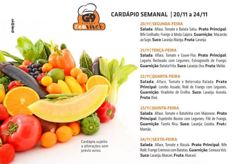 Confira o que a equipe do Espaço ConViver, restaurante aberto à comunidade escolar do Curso G9, preparou para esta semana.
