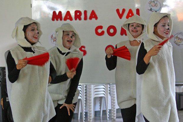 “Maria vai com as outras” é o título do livro da escritora Sylvia Orthof que foi adaptado para apresentação. A história mostrou o amadurecimento da ovelha Maria ao perceber que poderia fazer escolhas diferentes das outras ovelhas.