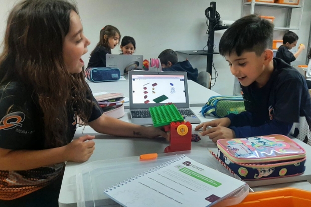 aula de Lego, os alunos do 2º ano do Ensino Fundamental I (Turma F22), da