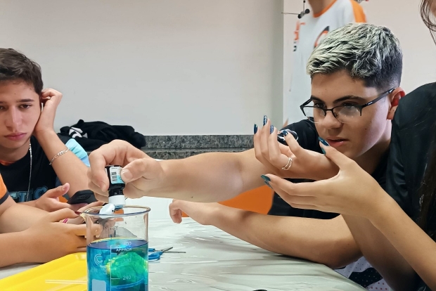 a aula, os alunos tiveram a oportunidade de construir um termômetro, colocando