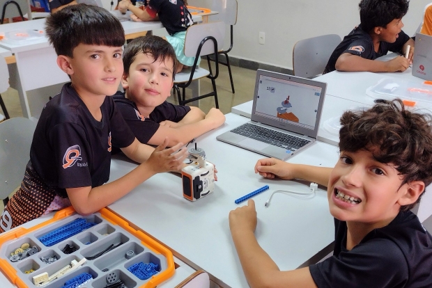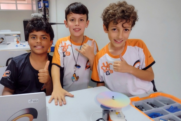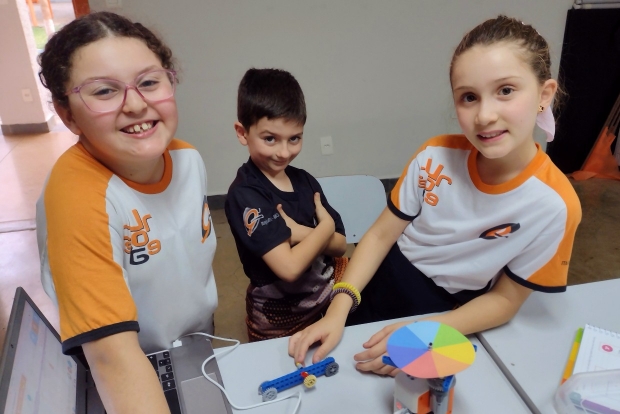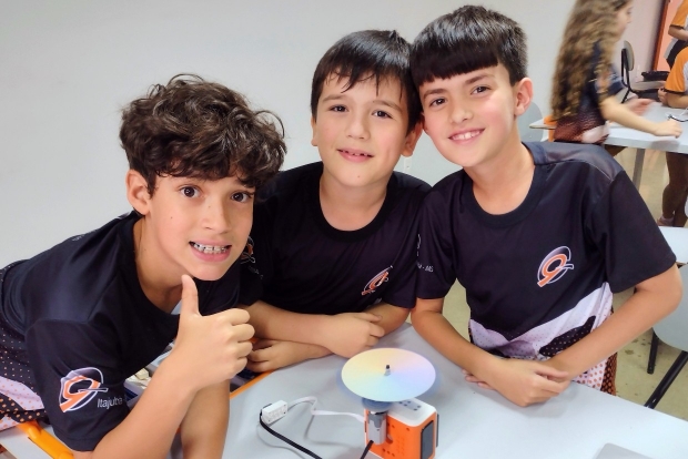 utilizando o robô VinciBot. Quando o disco com todas as cores girou, foi