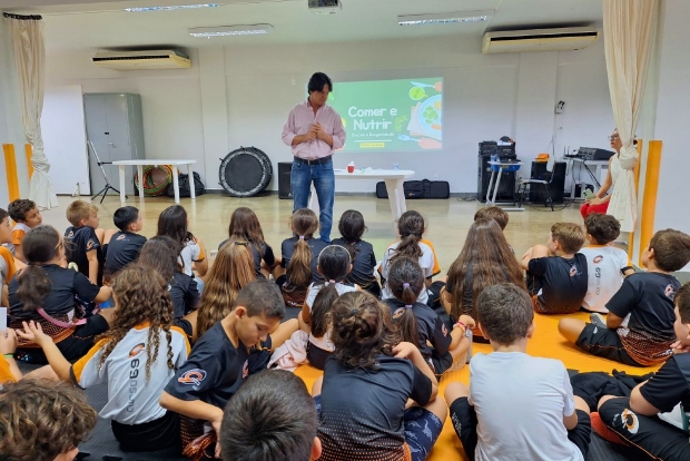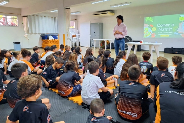 Para enriquecer os estudos dos alunos, a turma recebeu a visita do nutricionista e professor Fábio Lacerda, especializado em alimentação saudável. Lacerda compartilhou seu conhecimento e experiência com os estudantes, proporcionando um aprendizado prático e inspirador.