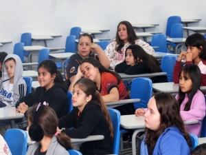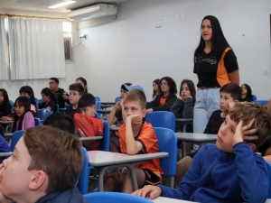 As turmas também receberam a visita da engenheira ambiental e cosmetóloga Priscila Pupin. Ela é consultoria ambiental e de cosméticos naturais, proprietária da marca Flor Brasil, uma empresa Itajubense que produz cosméticos naturais e sem plásticos há mais de cinco anos.