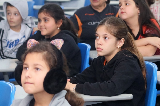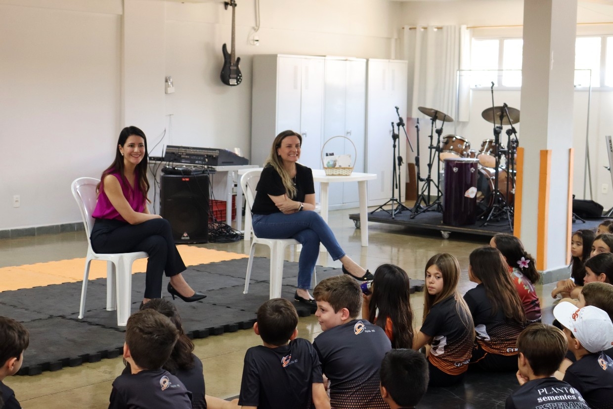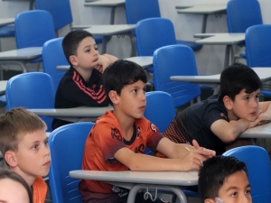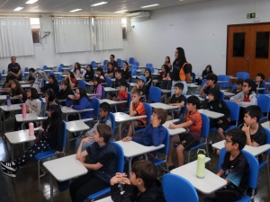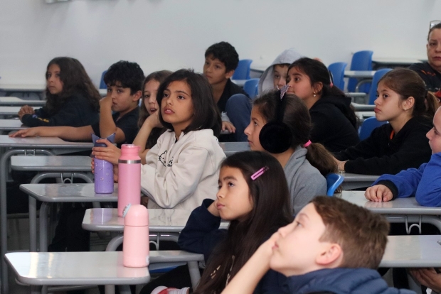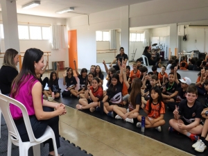 Os alunos do 4º ano do Ensino Fundamental I participaram de roda de conversa com duas convidadas muito especiais: as mães e dermatologistas Dra. Candice Dala Rosa Soares, mãe da estudante Alice e a Dra. Gracieli Perches, mãe da estudante Laís.