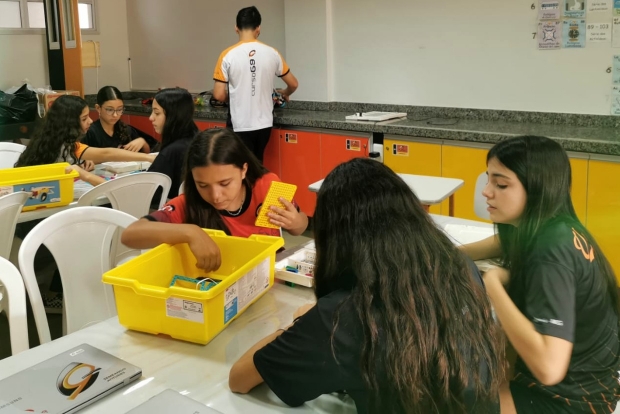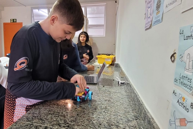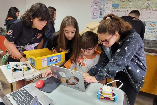 estudantes aprenderam como ligar o robô e compreenderam o funcionamento das