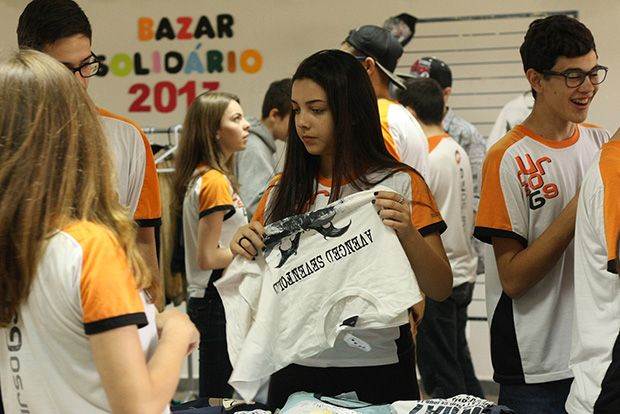 Pelo terceiro ano consecutivo, alunos do 2º ano do Ensino Médio realizaram Bazar Solidário, projeto que faz parte da proposta interdisciplinar da área de Humanas e é orientado pela professora Patrícia Ribeiro, de História. A atividade aconteceu em 6 de novembro e contou com a presença de diversas pessoas de toda a comunidade escolar: pais, alunos, professores e funcionários do colégio.