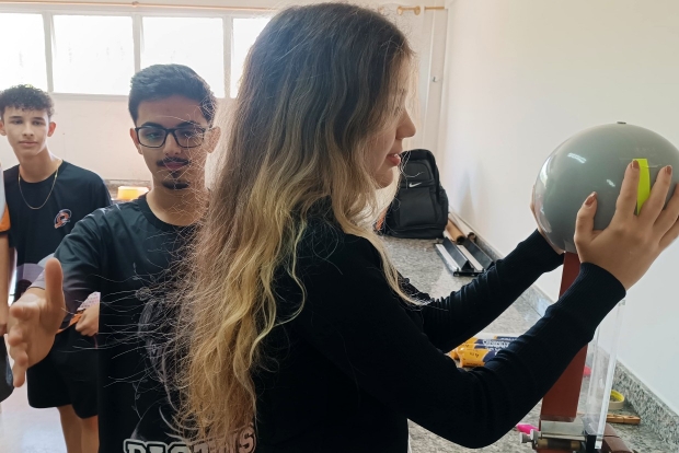 “Os alunos construíram pêndulo eletrostático e eletroscópio de folhas para observar a natureza elétrica dos corpos e entender na prática os processos de eletrização estudos em sala de aula”, explicou Kleber Nogueira.
