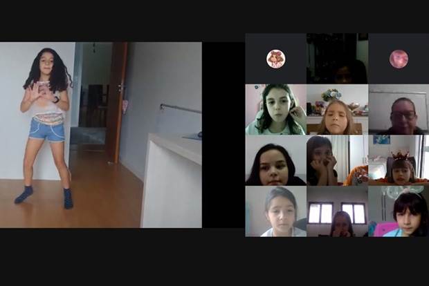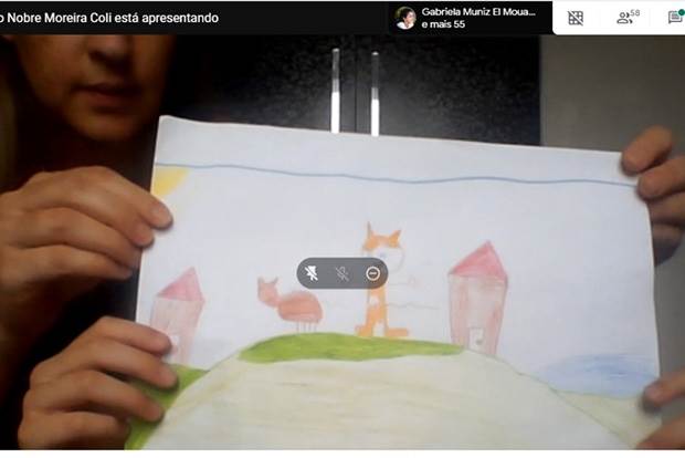 minha apresentação, eu fiquei com vergonha, mas aí eu desliguei a câmera. Mas,
