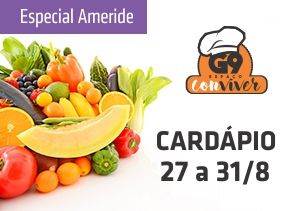 Salada: Alface, Tomate, Rúcula, Guacamole, Cenoura Cozida e Beterraba Ralada. Prato Principal: Bife à Pizzaiolo. Opção: MÉXICO: Frango a Mexicana e Filé de Frango. Guarnição: Batata Gratinada. Fruta: Uva.