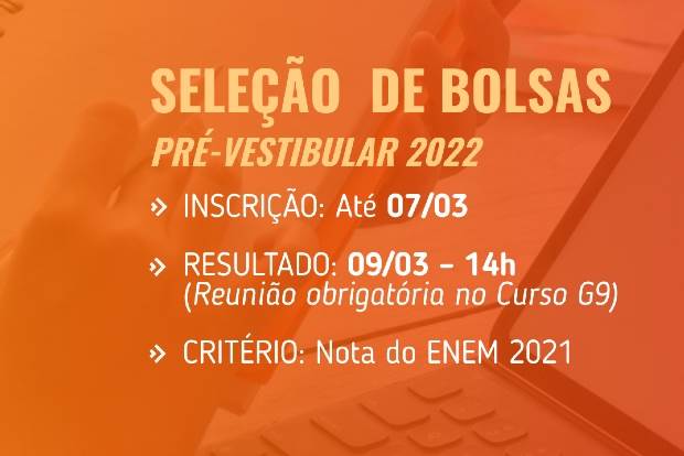 processo seletivo de bolsa de estudo para o Pré-vestibular do Curso G9 2022. O