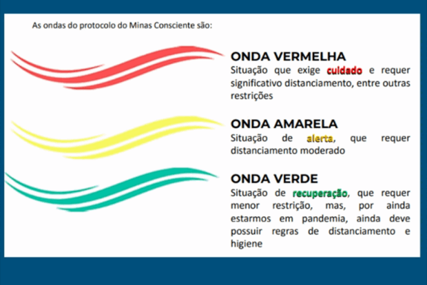 em ondas mais (vermelha e amarela) ou menos restritivas (verde) em função de