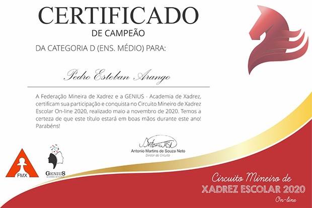 Minas Gerais) e no Campeonato Brasileiro de Xadrez Escolar.