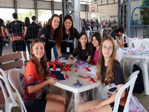 Alunos do 7º ano do Ensino Fundamental II (Turmas F71 e F72) participaram de uma oficina de reutilização de jeans com duas artesãs de Itajubá, Maria de Fátima Pagan e Paula Querino Mira da Silva. A atividade integra as pesquisas para a Feira do Conhecimento, que tem como tema geral “Atitudes para renovar o Mundo”. O subtema das turmas é “Pegue Leve Nesse Consumismo”.