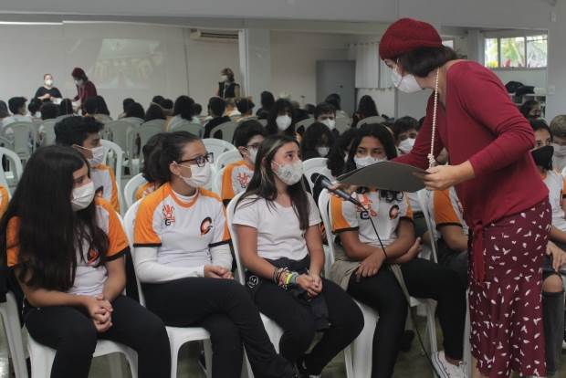 Amaral, representada pela professora Bruna; os alunos conheceram uma das