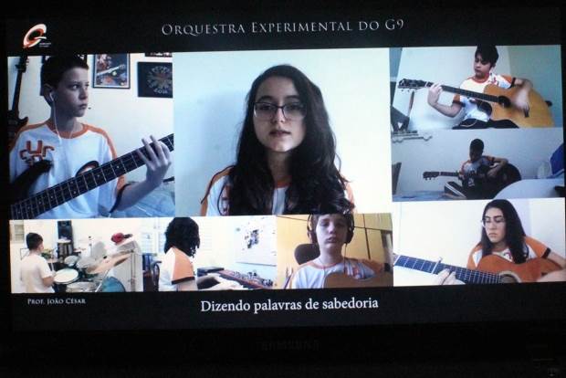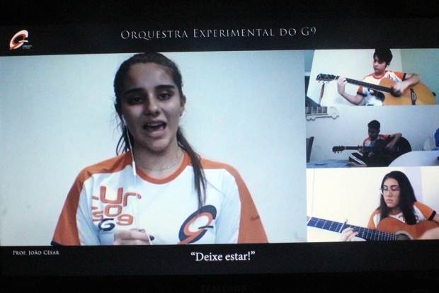 Alunos da Orquestra Experimental do Curso G9 tiveram a oportunidade de, pela primeira vez, sentir a sensação de estar ao vivo em uma transmissão pelo YouTube e apresentar o trabalho realizado pelo grupo durante a quarentena. A live, em 8 de julho, marcou a estreia do canal da Orquestra, sob a regência do professor de música, João César da Silva.