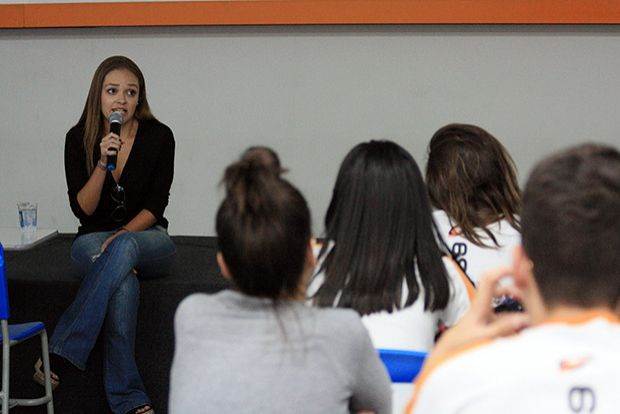 “Estamos muito felizes por poder contar com esta família hoje aqui na escola. Pela manhã, eles conversaram com os alunos. Foi maravilhoso, de um proveito espetacular. O Nicolas falou muito bem para nossas crianças e jovens de duas coisas muito importantes na vida dele: o desafio e o respeito ao outro”, disse a diretora pedagógica do Curso G9, professora Maria Aparecida Fernandes, na abertura da palestra.