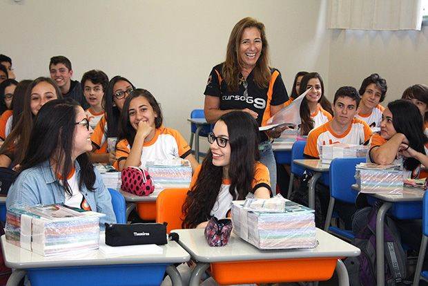 Alunos do Ensino Médio do Curso G9 foram recepcionados para o início do ano letivo com uma apresentação da coordenadora do segmento, professora Marcia Gil de Souza. A conversa teve o objetivo de dar as boas vindas aos alunos, apresentar a proposta pedagógica e os valores da escola e esclarecer a estrutura e as regras do segmento. O início das atividades aconteceu em 1º de fevereiro para os 1º e 2º anos e em 6 de fevereiro para o 3º ano. A turma do Pré-vestibular iniciará as aulas em 2 de março.