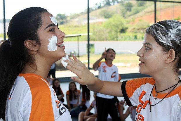 Alunos das turmas do 9º ano do Ensino Fundamental II participaram de encerramento das aulas de Educação Física no ano. Jogos, brincadeiras com água e bexigas e disputas de conhecimento, com direito à torta na cara, foram realizadas em 16 e 23 de novembro.