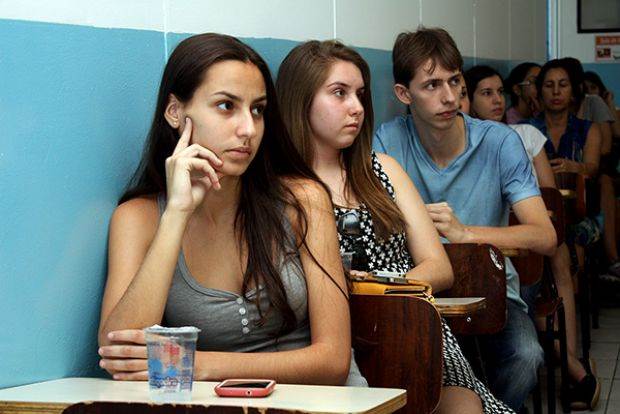Além de assistirem à entrevista do físico especialista em produção de energia, professor José Goldemberg, os alunos ouviram as explicações e contextualização feitas pelo professor de Filosofia do Curso G9, Petrus Ferreira Ricetto.