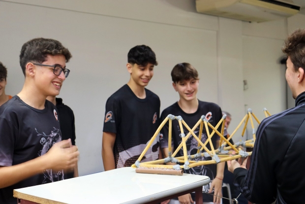 Os alunos do 1º ano do Ensino Médio da escola (Turmas M11 e M12), sob a coordenação da professora Pâmella Duarte dos Santos, realizaram a culminância do projeto de Física intitulado "Ponte de Macarrão". A atividade aconteceu em 25 de novembro, na Sala de Arte.