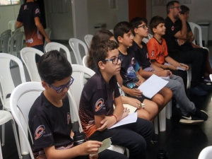 encontro. O convidado esclareceu dúvidas dos alunos sobre assuntos como o